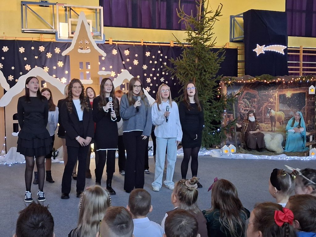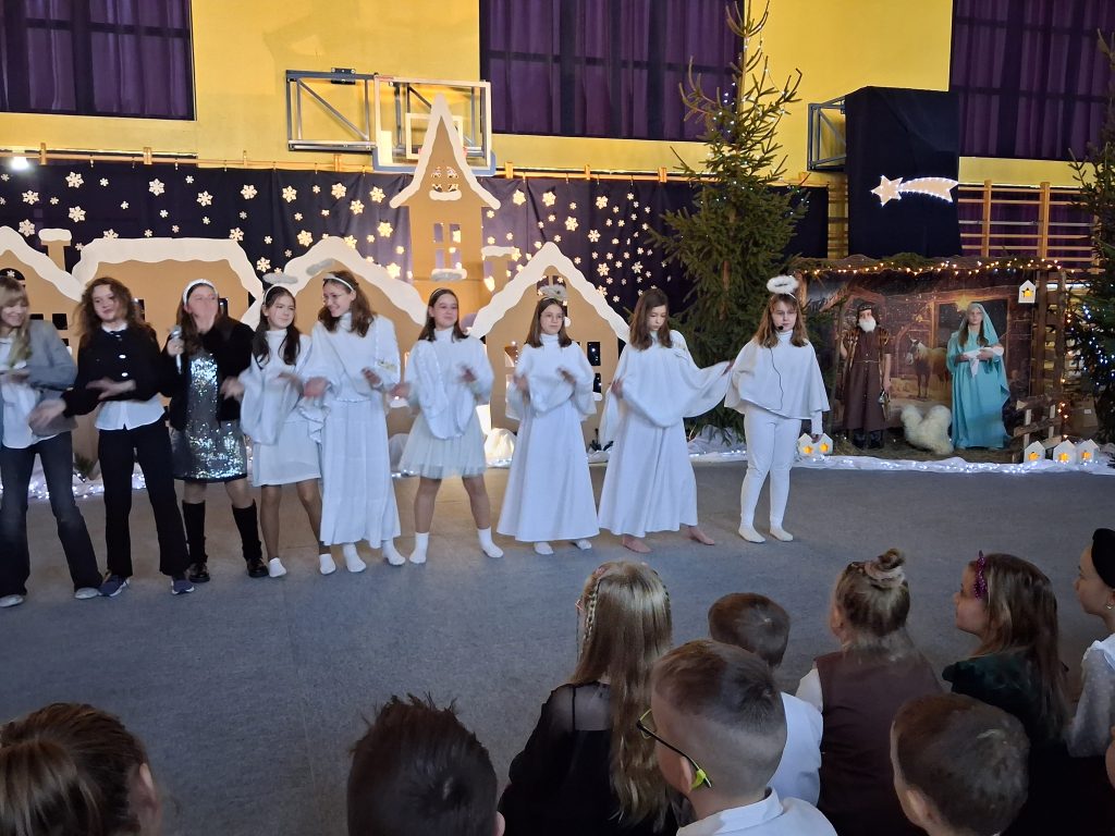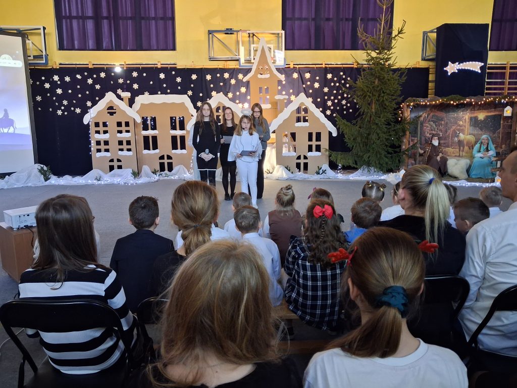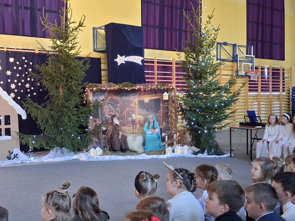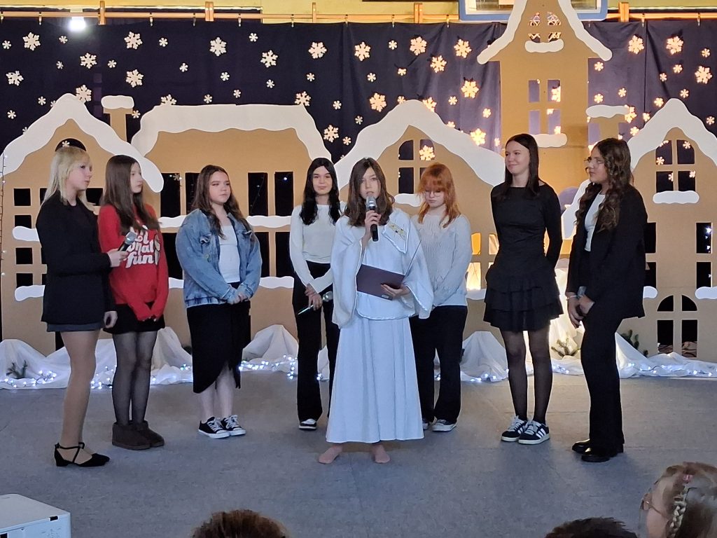 W piątek, uczniowie naszej szkoły, zaprezentowali tradycyjnie jasełka, czyli przedstawienie o tematyce bożonarodzeniowej, przedstawiające scenę narodzin Jezusa, wzorowane na średniowiecznych misteriach. Nasze jasełka niosły jednak całkiem współczesne przesłanie. Ludzie XXI wieku stawiają posiadanie, dostatek i wygląd, ponad narodziny Syna Bożego.